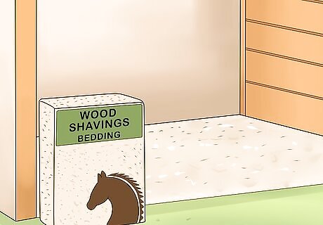 Cover the floor with soft bedding. Rubber matting covered by layers of straw or wood shavings is a popular choice of bedding. While they can rest standing up, horses need to lie down in order to fall into a deep sleep. Soft bedding will allow for proper rest and is easier on your horse’s hooves. Straw is a good, affordable choice, but might require more maintenance. It can get moldy, and horses often eat it, so you might have to replace it more frequently than wood shavings.