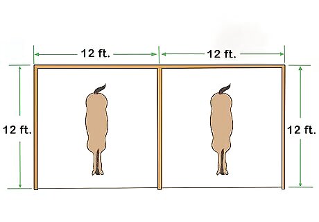 Include partitions between individual stalls. If you’ll be housing multiple horses in your basic shelter, each 12 by 12 foot stall should be separated by partitions. The partitions should be at least 8 feet tall (2.5 meters), and should be flush with the subfloor to prevent crevices that could catch a horse’s hoof. The subfloor is the flooring material, such as concrete or dirt, that lies below the upper layers of bedding. The partitions between stalls should allow the horses to see each other, as well as airflow between stalls. Make sure that the partitions are strong enough to keep the horses safe, though. They should not be able to get anything caught between stalls, whether that is a hoof, head, or halter.