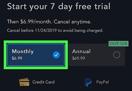 Enter your billing information. Type your credit card info into the form provided. Or, if you'd prefer using PayPal, click PayPal below "Annual," and then click Pay with PayPal to sign in and complete your payment. If you want to save your card info for later use, check the box below the form.