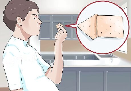 Have bland snacks throughout the day. Make sure to snack throughout the day, but go for bland foods like plain crackers. Such foods can help lessen nausea, which often keeps pregnant people awake during the night. Watch your calories, however. It's healthy to gain weight during pregnancy, but only up to a certain amount. Many types of crackers and bland snacks contain a lot of empty calories, so keep an eye on portion size to avoid overeating.