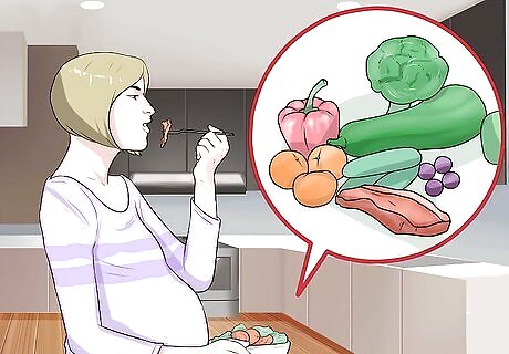 Eat a healthy diet. As nausea and heartburn are a major culprit in sleepless nights when pregnant, work on regulating your diet. If you feed your body healthy foods rich in vitamins and nutrients, this may lessen symptoms of nausea associated with pregnancy. Avoid acidic and spicy foods, as these can make heartburn worse. Eat a balanced diet, rich in fruits and vegetables. Strive for lean proteins and complex carbs like whole grain bread, rice, and pasta.