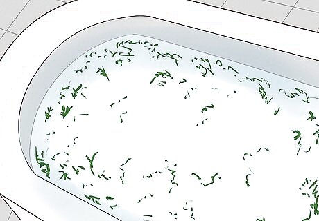 Use herbs. A variety of herbs and spices, some of which you probably have in your kitchen right now, can be used in a bath to revitalize skin. If you have any spices you don't frequently use, try throwing them into a bath. Sage, rosemary, peppermint, chamomile, and green tea have a positive effect on the skin for some. The scents of these herbs can also be calming, if you're looking for a bath as a means to wind down. You can either sprinkle herbs into your tea are brew a herbal tea ahead of time. Take one to two cups of your tea and add it to your bathwater. Any excess herbs should be removed from the tea kettle and placed in a washcloth. Tie the top of the washcloth together and leave it in the bath while you soak.