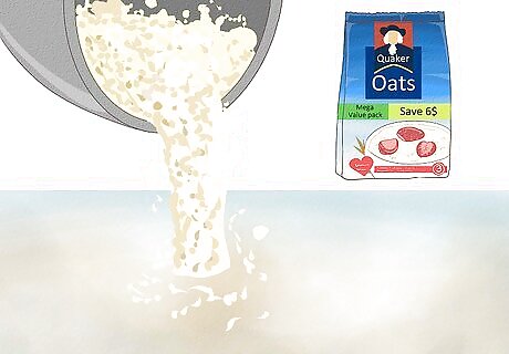 Take an oatmeal bath. Oatmeal baths are a very popular method to treat dry skin. Oatmeal can sooth dry and itchy skin and also helps moisturize skin. For an oatmeal bath, either use colloidal oatmeal or run a few cups of regular oatmeal through a food processor. This will mix better with the bathwater. You can also add baking powder, coconut milk, or olive oil for added softness. Mix the oatmeal and any other ingredients you're using into a warm bath. Stir until dissolved and then hop in. Soak for 20 minutes and, when you're done, gently pat your skin dry.
