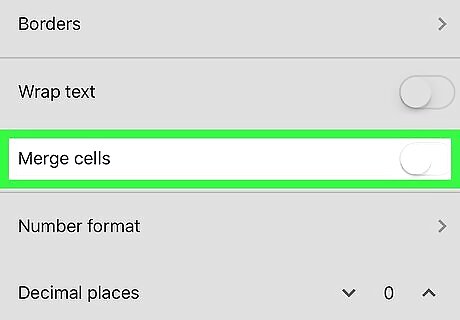 Slide the Merge cells switch to iPhone Switch Off Icon. This will disable merging in the selected cell, and split it into its original, separate, constituent cells.