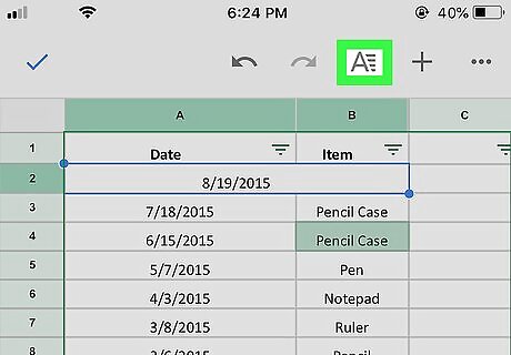 Tap the "A" icon on the toolbar at the top. This button is located next to the "+" icon in the upper-right corner of your screen. It will open the editing panel.