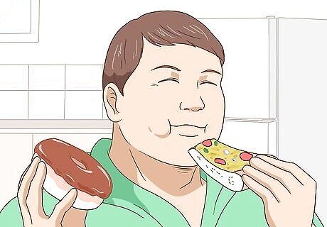 Eat your favorite foods. Think about the yummy foods you have been craving. Choose one or two delicious meals to cook for yourself or order out. Only cook if you actually like cooking. Otherwise, that falls under the chore category, and you’re skipping those for the day. In addition to your basic breakfast, lunch, and dinner, choose tasty snacks or desserts that you like. Try to keep it balanced. You’ll be low on energy and unable to enjoy your day, if you only eat fried or sugary processed foods.