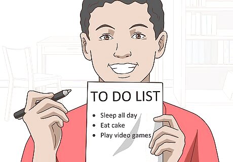 Make a list of activities you want to do. To make sure you spend your special day doing all the fun stuff you like to do, make a list. Just once, forget about chores or obligations for the day. Write down all the activities that brighten your mood. You may even add some interesting activities you have wanted to try. Plan your special day on a national holiday, on a weekend, or you can use a vacation day to spoil yourself.
