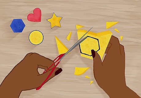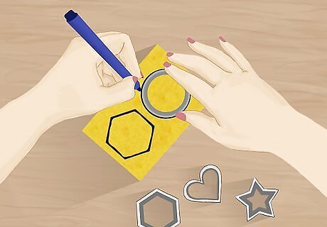 Use a cookie cutter and a marker to trace a shape onto the sponge. Depending on the size of the cookie cutter, you may be able to fit 2 shapes onto 1 sponge. You can also draw the shapes by hand if you prefer. Simple shapes, like hearts and stars, work better than more complex shapes, like snowflakes. For complex shapes, like a flower, draw the flower, stem, and leaves separately. Consider other learning shapes, such as letters, numbers, circles, or squares.
