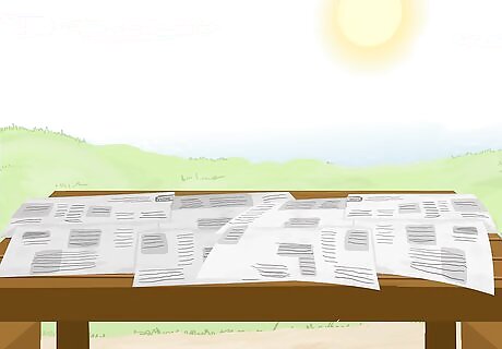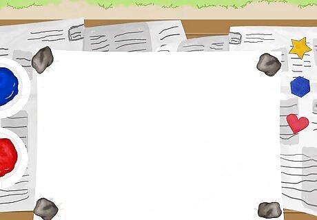 Cover your work surface with newspaper. Use 2 to 3 layers of newspaper in case your child spills some paint or water. Another option is to cut up a plastic or paper bag, and use that instead. You can also use a cheap, plastic tablecloth or butcher paper. You can find cheap, plastic tablecloths in the baking or party supply section of a craft store.