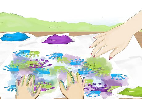 Add some finger painting if your child likes to get messy. If your child wants a more hands-on activity, let them! Have them dip their fingers into the paint, then add some dots and stripes to their composition. Make sure that the paint is non-toxic first. Most children's paint is non-toxic, but read the label to be sure.