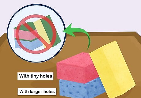 Get a plain kitchen sponge. Kitchen sponges come with tiny holes and larger holes, so you can pick the one that you like. Make sure that the sponge does not have a scratchy pad on 1 side. It will be difficult to cut. Consider getting multiple sponges in different colors. This way, you can match the sponge to the paint color. Do not use sea sponges if you want to cut out specific shapes. They are too lumpy. They will make great clouds, however!