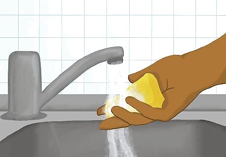 Clean the sponge, if needed, then allow it to dry. Store bought sponges are already clean, but used kitchen sponges are dirty. If you are reusing an old sponge, clean it with soap and hot water. Rinse the sponge until all of the soap bubbles are gone, then set it out to dry. The sponge must be completely dry, otherwise the marker will bleed.