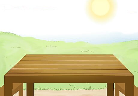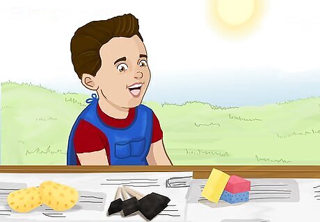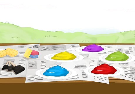 Choose an easy-to-clean area. Sponge painting can get messy, so some place that is easy to clean would be the best. Painting outside on a warm, sunny day is a great idea because the paint will dry faster. Your child may also find inspiration in the world around them. Make sure that you have a table that you can work on, and that nothing that can get dirty or ruined is nearby. If you are painting outside, try a patio table. You can also have your child sit on the sidewalk.
