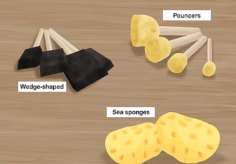 Get additional sponges to paint with, if desired. Visit your local craft store, and see what types of sponges that you can find. Pick up a few and have them ready to paint with. Do not cut these sponges. Sponge brushes come with wedge-shaped tips, so they are perfect for creating lines and flower stems. Pouncers are round sponge brushes perfect for making polka dots. Sea sponges are very lumpy and ideal for clouds.