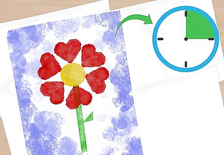 Let the paint dry. How long this takes depends on the weather and how much paint your child used. In most cases, this should only take 10 to 15 minutes. If the paint is not drying fast enough, set it out in the warm sunshine or dry it with a hairdryer. If you used fabric paint, you may have to heat set it. Cover the painting with a tea towel, then press it with a warm iron. Read the instructions on the paint bottle for more detail.