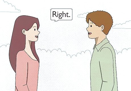 Let others speak. When you are having a conflict with someone, hear that person’s side of the story. Do not interrupt. Even if you need to stick up for yourself, you will be more aware of the person’s perspective. This will help you communicate more effectively. Do not dismiss others’ thoughts as nonsense. That is aggressive and unproductive behavior. Show that you are listening through verbal and visual cues. Nod your head and look the person in her eyes. Offer verbal responses like “right,” “yes,” “mhmm.”
