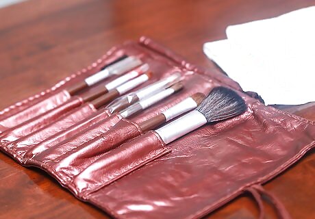 Invest in quality makeup brushes. You will need a small assortment of brushes to apply your eye shadow and powder. You can buy the brushes individually, or you can buy them as a set. Lipstick can be applied straight out of the tube, or it can be applied with a lipstick brush. Eye shadow will require several brushes: a fluffy brush, a crease brush, and a blending brush. Powder brushes are great for applying setting powder, powder foundation, and blush. Foundation brushes may be used to apply liquid foundation. You can also apply liquid foundation and cream foundation using makeup sponges.