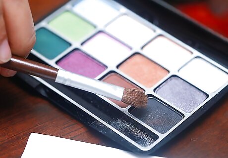 Find an eye shadow that works with your eye color. Eye shadow can make your eyes appear larger and brighter. Consider buying two or three different sets of eye shadow. That way, you can wear different colors with different outfits. Be sure to have a lighter set for daily wear, and a darker or brighter set for nights out. Here are some shades for you to try: If you have brown eyes, you can wear almost any shade, including: aqua, bronze/copper/gold, browns, blues, greens, purples, and silver. If you have hazel eyes, stick with: brown, bronze/gold, green, and purple. Avoid blue. If you have blue eyes, go for warm colors, such as: dark brown, gold, and orange. You can also wear cool colors, such as blues, silver, purple, and pale pink. If you have green eyes, try: beige and tans, bronze/copper/gold, browns, purples and peaches, and green.