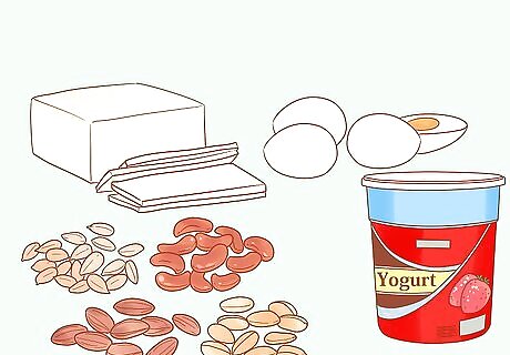 Eat enough healthy fats to feel full and satisfied. Use full-fat ingredients when making dishes instead of low-fat or fat-free options. Full-fat yogurt, avocados, eggs, butter, cheese, olive oil, coconut milk, oily fish, and nuts are great sources of fat that you may want to add to your diet. If you feel more tired or hungry after switching to a keto diet, that’s one sign that you should add some more fat to your diet. Pouring heavy whipping cream into your coffee is another easy way you can quickly add fat to your diet. 70-80 percent of your daily calories will come from fat when you’re on a ketogenic diet.