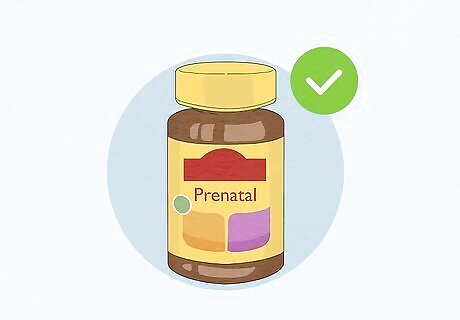 Consider taking prenatal vitamins. Your body will need sufficient additional nutrients to support a pregnancy and stay fit. Consider taking a pre-natal vitamin to help you get additional nutrients you may need and not be getting through food. During pregnancy, the body is designed to put your child’s nutritional needs before yours. Try and get as many nutrients as possible from healthy and whole foods. Make sure to speak to your doctor before taking pre-natal vitamins or ask her to prescribe some for you.
