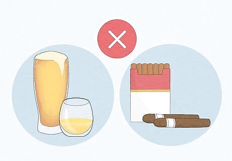Avoid alcoholic beverages and tobacco. It’s advisable to avoid all alcohol and tobacco while you’re pregnant. Using these substances can be potentially harmful to you and your unborn baby and may undermine your efforts to stay fit. There is plenty of evidence about the risk of alcohol consumption for pregnant women, so consider avoiding alcohol altogether while you’re pregnant. Tobacco use can put your unborn child at risk for conditions such as low-birth weight and respiratory diseases. If you smoke while pregnant, speak to your doctor about possible treatment options to help you quit and keep your unborn baby healthy.