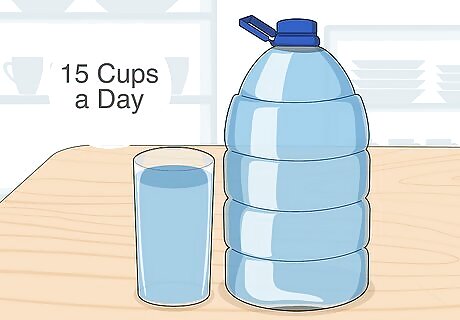 Warm up and cool down as a part of exercise sessions. Whenever you have an exercise session, make sure you warm up before them and spend some time cooling down once you’re finished. This will help prepare your body to exercise as well as stabilize your temperature and blood pressure. Warm up with a low-impact and light activity, such as walking, for 5-10 minutes. Cool down with a low-impact activity such as light jogging or walking for 5-10 minutes. Being and staying properly hydrated for exercise is important. Make sure to have at least 64 ounces of liquid a day to stay hydrated and add 8 ounces of water for every hour of activity.