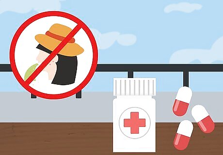 Protect your skin. Especially since many cruises travel to tropical locales, you should take precautions against illnesses transmitted by mosquitoes or other insects. Consult the CDC or similar health organization for current warnings and recommendations. Bring and use insect repellent, and cover bare skin when possible. Report rashes or unusual markings caused by insect bites, or symptoms of illness to the medical staff onboard. Covering exposed skin can also help reduce your likelihood of sunburn. Choose a wide-brimmed hat and regularly apply a full-spectrum sunscreen with UVA and UVB protection.