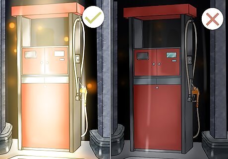Look for a well-lit gas station in a reasonably safe neighborhood. Sometimes you may not have a choice, but you shouldn't have to feel nervous when stopping to refuel in a dark area or an unsafe part of town if you have alternative options.