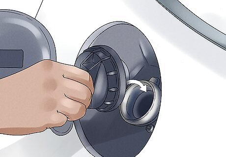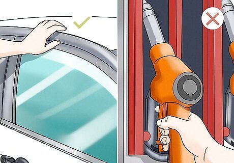Turn off the engine and lock the doors. Do this as soon as you find a gas pump that is available. Never leave your car running idle or your doors unlocked as you refuel, even for a few moments or if there is another passenger inside it. Doing so may result in a potentially fatal explosion or fire.