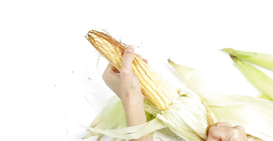 Clean the corn by removing the husks and silk. Remove the husks from the ears of corn by gripping them firmly and pulling them away and down from the ear. Clean the silk from the ears the same way. If any stray silk strands remain, pluck them off the corn. If any parts of the ear are bug-eaten, trim them away by taking a knife and carefully cutting off the eaten part. Try to cut off as little of the good ear as possible.