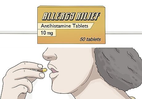 Take an oral antihistamine if you have other seasonal allergy symptoms. Antihistamines help reduce swelling and itchiness caused by allergens, so check what’s available from your local pharmacy. Take 1 dose of antihistamines, such as 10 mg of Claritin or Zyrtec every day, with a glass of water and wait about 30 minutes for it to start taking effect. If your eyes still feel itchy after the first dose wears off, try taking another dose. If you have severe allergies, talk to your doctor about prescription-strength antihistamines since they’re stronger. Antihistamines can make you feel drowsy, so be cautious while driving or operating machinery after taking them. Follow the dosage instructions on the package closely since too much could cause nausea or vomiting.