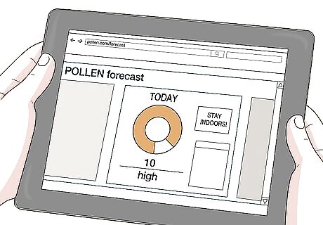 Avoid going outside when there’s a high pollen count. Check the weather each day and pay attention to the pollen levels in your area. When there are between 9.7–12 grams of pollen per cubic meter, stay indoors to prevent pollen from getting in your eyes and causing irritation. If you need to go outside, put on glasses that wrap completely around your eyes so you stay protected from allergens. If you have other allergic conditions to hay fever, try wearing a face mask so you don’t breathe in any irritants. Change clothes after going outside since they may have pollen stuck on them. Peak pollen times occur in the early morning and evening, so you may not experience as much itchiness if you go out during midday.