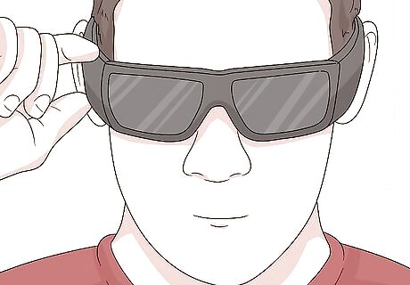 Put on wraparound glasses instead of wearing contacts. Avoid putting contacts in while you’re experiencing eye irritation since they could make your eyes feel itchier. Opt for glasses that wrap around your face and fit tightly against your eyes. That way, less pollen and irritants will float into your eyes so they don’t get red or itchy throughout the day. If you don’t need glasses normally, look for wraparound sunglasses to wear when you go outside where irritation is most likely to occur.Tip: If you need to wear contacts, opt for a daily disposable variety so pollen or irritants don’t build up on the surface.