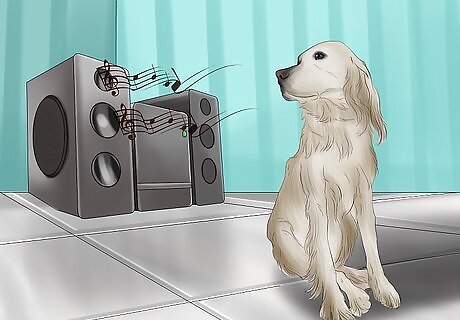 Drown out the impact of the storm. For example, if your dog is afraid of lightning, try turning on a light in the room your dog is in. This will minimize the impact of the lightning. Turn on music, or some other kind of noise, to drown out the noise of the thunder. If your dog can't hear it very well, the dog is likely to be less fearful.