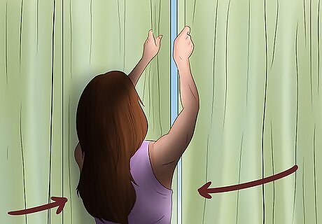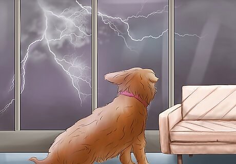 Block out as much of the noise and light as possible. If you can minimize the amount of the storm that the dog experiences, it may reduce the dog's discomfort. Close curtains, especially if you have blackout curtains, and move the dog to a room in your home where you can hear the thunder the least. Doing this in combination with distracting the dog with its favorite toy or game can really alleviate a dog's fear response.