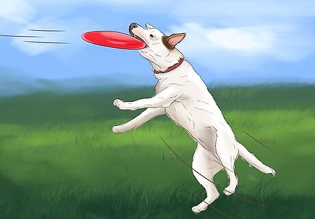 Do something fun with the dog. The best way to change your dog's fearful behavior is to sidetrack it with an activity it enjoys. What does your dog like to do the most? Maybe it's tugging on a toy or playing catch. Whatever it is, try doing it during a storm. You, and your dog, may get wet from walking or playing in the rain, but it will be worth it if your dog is sidetracked from its fear. If your dog is behaving well, and responding to commands correctly, this is a great time to give it a treat. This will reinforce the good behavior, and not the bad.