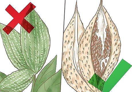 Choose the appropriate pods to harvest. Not all milkweed pods will produce viable seeds for a bountiful harvest in spring so you need to be careful which to pick. Ripe pods will tend to be dry, gray or even brown. If you have picked pods that aren't fully developed, attempt the harvest, but your overall result may be less due to a lower rate of success in your seeds growing.