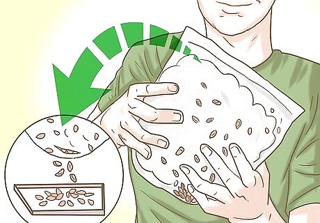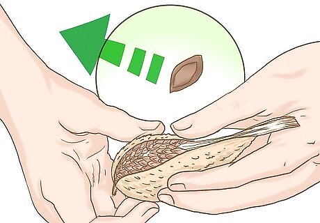 Apply final touches to the seeds. Once your seeds have been stored until spring, remove it from the bag and examine them. If their outer shells have cracked then the chilling has worked, but if they haven't cracked you may need to do a little extra work to make sure they'll grow into healthy plants in Spring. Put your seed in a bag filled with sand or salt and shake vigorously for 30 seconds. Once you sort the seed from the sand or salt, the shells should be removed completely.