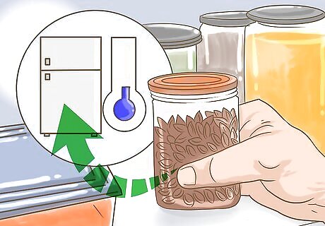 Begin the chilling process. Put your container in a fridge, preferably in an area that is not used often, and wait. Milkweed seeds in nature undergo a process called stratification where their outer shell is cracked by the cold winter weather, allowing the seed to sprout in Spring. By storing the seed in a cold area like a fridge over Winter, you are directly mimicking this natural process. Doing this greatly improves the chance of having a successful harvest in Spring. By simulating this natural process the likelihood of the seeds growing into full milkweed plants is greatly increased.