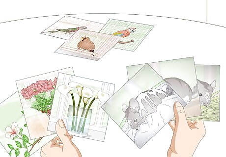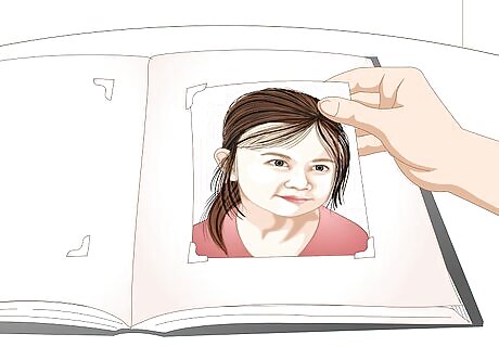 Use a photo album if you still want to look through your photos regularly. Get a photo album that uses sleeved pages rather than adhesives or picture corners. Slide 1 picture into each slot on the album pages so they’re displayed in the order you organized them. If there are lines on the sides of the page, you can use them to write a description of the picture. You can buy photo albums with various cover designs from big box stores or photography shops. You can also write descriptions on the backs of the photos using a felt-tip pen or marker. Make albums for specific categories, such as one for vacation photos and one for family photos. Some photo albums have a set amount of bound pages while others allow you to add more pages later on. Choose a style that works best for you. Photo albums work best for photos that are 5 by 7 inches (13 cm × 18 cm) or smaller.