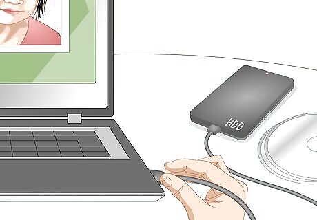 Copy your files onto external hard drives or CDs so you have physical backups. Get an external drive that’s large enough to hold all of your photos and plug it into your computer. Locate the scanned photos on your computer and place them in a folder so you can copy them easily. Make a copy of that folder to upload to a hard drive or CD so you don’t lose the scans if your computer crashes. You can buy external hard drives from electronics stores. Many photo departments have services where you can transfer files to a CD if you aren’t able to burn them at home.