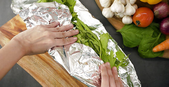 Wrap celery in aluminum foil and put it in the fridge. Wrap the foil around the celery to keep the water inside so your celery doesn’t go limp. Don’t crimp the edge of the foil shut, so that the ripening gas that celery produces can escape. Don’t put your celery in the freezer, because it will be all mushy when you defrost it.