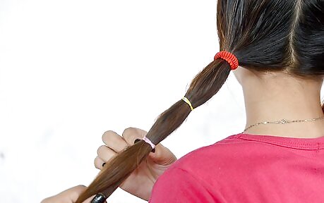 Start with one section. Clip/tie the others back. Take a hair band and tie the section as you normally would to make a ponytail at about ear/neck level. Tie another right below the first one without leaving any gaps until you reach the end of the section. Try not to have any hairs sticking out.