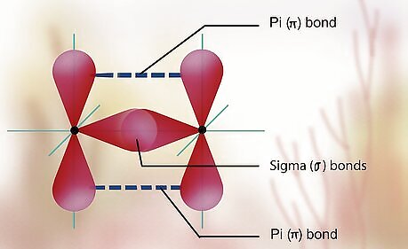 Superimpose the orbitals. To visualize these different bonds, you have to superimpose the orbital of one atom on the orbital of the other. To visualize pi bonds, imagine two dumbbells being pushed together. The tops and bottoms would touch, but the centers would not. Sigma bonds can be compared to two balls being forced together. They meet head on and the bond resides in the internuclear axis, which could be compared to the space between the centers of the two balls.