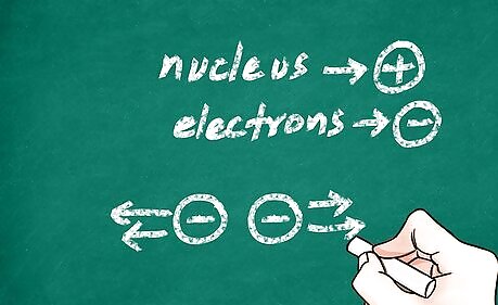 Think about the structure of an atom. Atoms are made up of protons (positively charged particles), neutrons (particles with no charge), and electrons (negatively charged particles). Protons and neutrons make up the mass of the atom and rest at the center of the atom. Electrons are so small that their mass is negligible, and they orbit around the center of the atom.