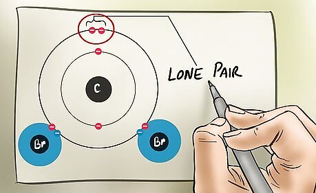 Factor in lone pairs. Lone pair electrons are valence electrons in an atom that do not bond with another atom. Since they are not bonding with other atoms and being pulled outward by other nuclei, the lone pairs orbit closer to the center of the atom. This exerts slightly more repulsive force on the other electrons, and alters the shape of the atom or molecule. For example, water could be expected to be linear (H-O-H), but the oxygen has two lone pairs of electrons that interact with the shape of the molecule. This pushes the hydrogens closer together than they would be otherwise, and gives the molecule a bent geometry.