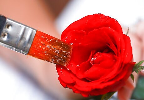 Brush a thin layer of egg white on each flower. Hold the edge of the flower or petal with a pair of tweezers. Use a new paintbrush, that has never been used for anything but food. Use a small brush to avoid tearing the petals. If egg is too thick to brush on easily, stir in a few drops of water.