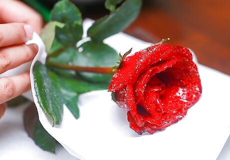 Store the flowers. Store the flowers in an airtight container at room temperature away from direct sunlight. Separate layers with paper towels or tissue paper. Thin-petaled flowers that have completely dried should last for a few weeks or months this way. Flowers with thick petals may only last a few days.