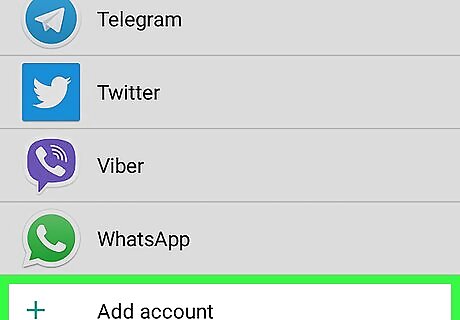 Tap the Add account button. This button will list all your available apps on a new page. On some devices, this button may just be a "+" sign at the top of the list.