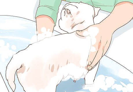 Only bathe your Westie occasionally. If brushed consistently, Westies don't require frequent bathing. They have naturally dry coats which can be damaged by over bathing. Bathe your Westie if gets into mud, excrement, or similar filthy substances. Otherwise, baths a few times a year will be sufficient. You should, however, wipe your Westie down frequently. When the dog comes inside from playing, feel free to wipe it down with a dry or lightly damp towel to remove dirt and debris clinging to the coat. This is especially important for keeping white Westies looking their best. When you do bathe your dog, never use human shampoo. It has the wrong pH for a dog and can be bad for the coat and skin. Purchase dog shampoo at your local pet store.